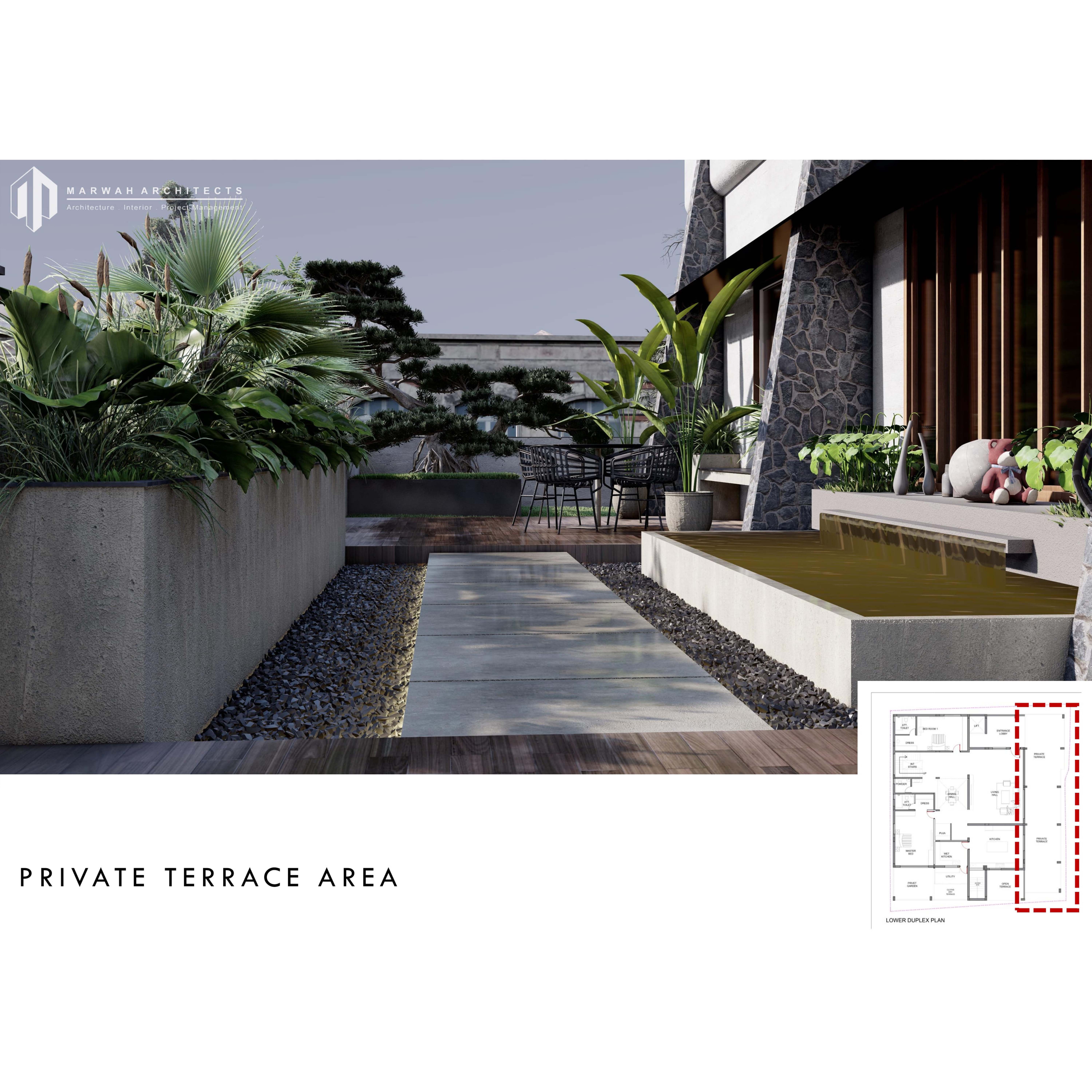 The design improves natural ventilation and creates private outdoor pockets without disrupting the interior layout — something most curved-elevation projects fail to achieve because of compromised internal planning.